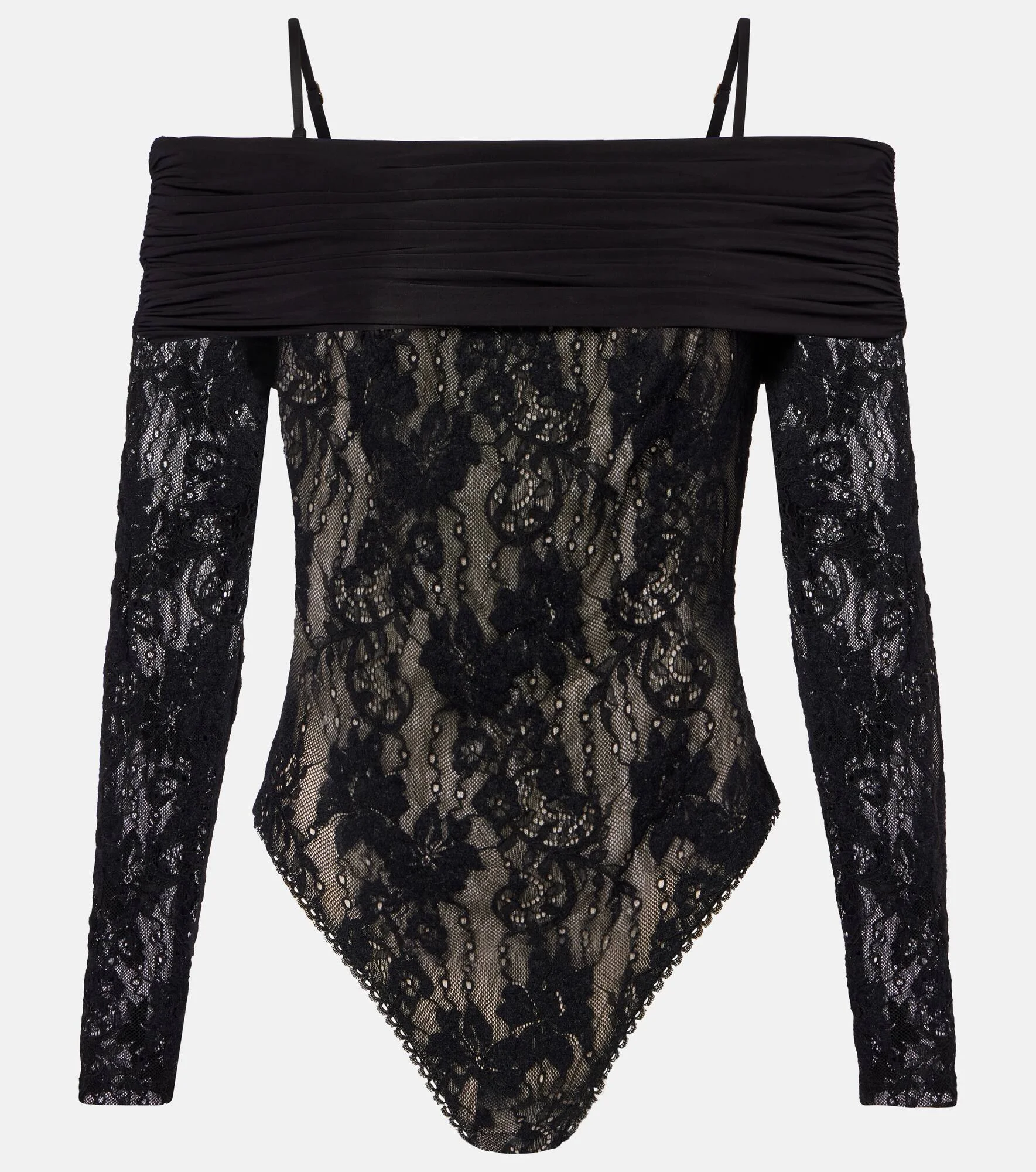 Ethereal and romantic barely scratch the surface when describing a Zimmermann piece. Made from stretchy floral lace, the Rebellion bodysuit features an off-shoulder panel with a gathered overlay. Product Details - Material: 90% polyamide, 10% elastane - Care instructions: dry clean - Made in China - Designer color name: Black - Item color: black - Hardware color: gold - Material II: 90% viscose, 10% elastane - Lining: 81% polyester, 19% elastane - Adjustable shoulder straps - Closure: snap-buttoned fastenings - Item number: P01129777 Size & Fit - True to size - Fitted - Slightly stretchy fabric - High-cut leg - The model seen in the picture is 178cm-5'10" and wearing a size 0
