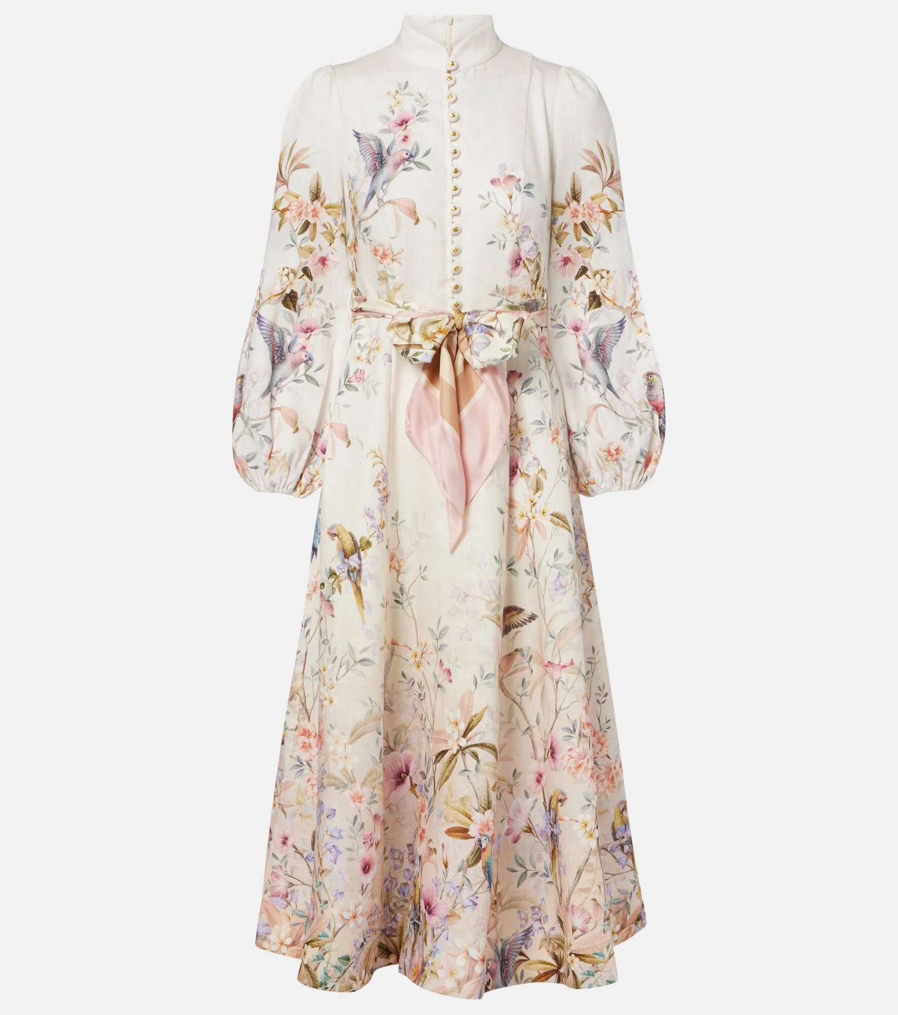 Ethereal and romantic barely scratch the surface when describing a Zimmermann piece. This Rebellion midi dress is crafted from linen, defined by a vibrant flora and fauna print, and a removable fabric belt. Product Details - Material: 100% linen - Care instructions: dry clean - Made in China - Designer color name: Cream Aviary - Item color: beige, multicolor - Insert: 100% silk - Interlining: 100% polyester - Closure: buttoned front - Detachable belt - Item number: P01129780 Size & Fit - True to size - Cinched waist - Adjustable at the waist - Non-stretchy fabric - The model seen in the picture is 178cm-5'10" and wearing a size 0
