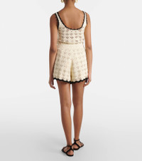The Rhiannon cotton shorts from Zimmermann feature a flattering crochet knit pattern, perfect for elevated summer days. Complemented by scalloped edging, contrast trims, and a mid-rise drawstring waistband, they offer comfort and style for an effortlessly chic look. Product Details - Material: 100% cotton - Care instructions: dry clean - Made in China - Designer color name: Cream/Black - Item color: ivory, black - Closure: drawstring - Elasticated waistband - Trim: 100% viscose - Lining: 100% cotton - Item number: P01062761 Size & Fit - True to size - Adjustable at the waist - Non-stretchy fabric - High-waisted - The model seen in the picture is 178cm-5'10" and wearing a size 0