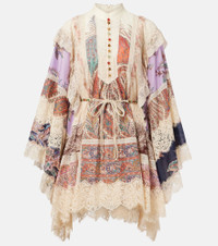 A maximalist piece with a romantic soul, the Rhiannon minidress from Zimmermann is designed to spread joy. Vibrant patterns bloom across the silhouette, while intricate cotton trims and gemstone embellishments at the neckline lend a touch of charm. Product Details - Material: 100% cotton - Care instructions: dry clean - Made in China - Designer color name: Spiced - Item color: multicolor - Lace: 100% cotton - Trim: 100% polyamide - Separate lining slip: 86% polyester, 14% elastane - Self-tie belt - Item number: P01062756 Size & Fit - True to size - Dropped shoulders - Loose fit, comes with belt - Non-stretchy fabric - The model seen in the picture is 178cm-5'10" and wearing a size 0