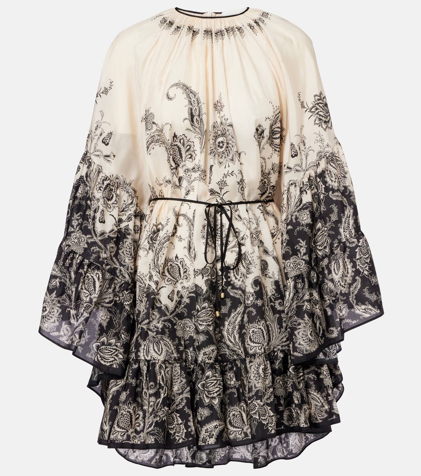A charming addition to your warm-weather edit, the Rhiannon minidress from Zimmerman is crafted from luxurious silk. This style is finished with a bold floral print and features billowed sleeves and gathered detailing. Product Details - Material: 100% silk - Care instructions: dry clean - Made in China - Designer color name: Cream/ Black Floral - Item color: white, black - Contains non-textile parts of animal origin - Item number: P01062755 Size & Fit - True to size - Loose fit, comes with belt - Non-stretchy fabric - The model seen in the picture is 178cm-5'10" and wearing a size 0
