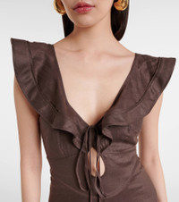 Product Details - Material: 100% linen - Care instructions: dry clean - Made in China - Designer color name: Chocolate - Item color: brown - Closure: zipped back - Item number: P01046545 Size & Fit - True to size - Low back - Cinched waist - Non-stretchy fabric - The model seen in the picture is 178cm-5'10" and wearing a size 0