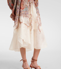 The Rhiannon midi dress from Zimmermann is crafted from ramie and features a vibrant allover print. This design comes with a separate slip a removable belt, and loose sleeves with fitted cuffs. Product Details - Material: 100% ramie - Care instructions: dry clean - Made in China - Designer color name: Cream Paisley - Item color: multicolor - Closure: partially button-down - Detachable belt - Detachable lining - Item number: P01062744 Size & Fit - True to size - Loose fit, comes with belt - Non-stretchy fabric - The model seen in the picture is 178cm-5'10" and wearing a size 0