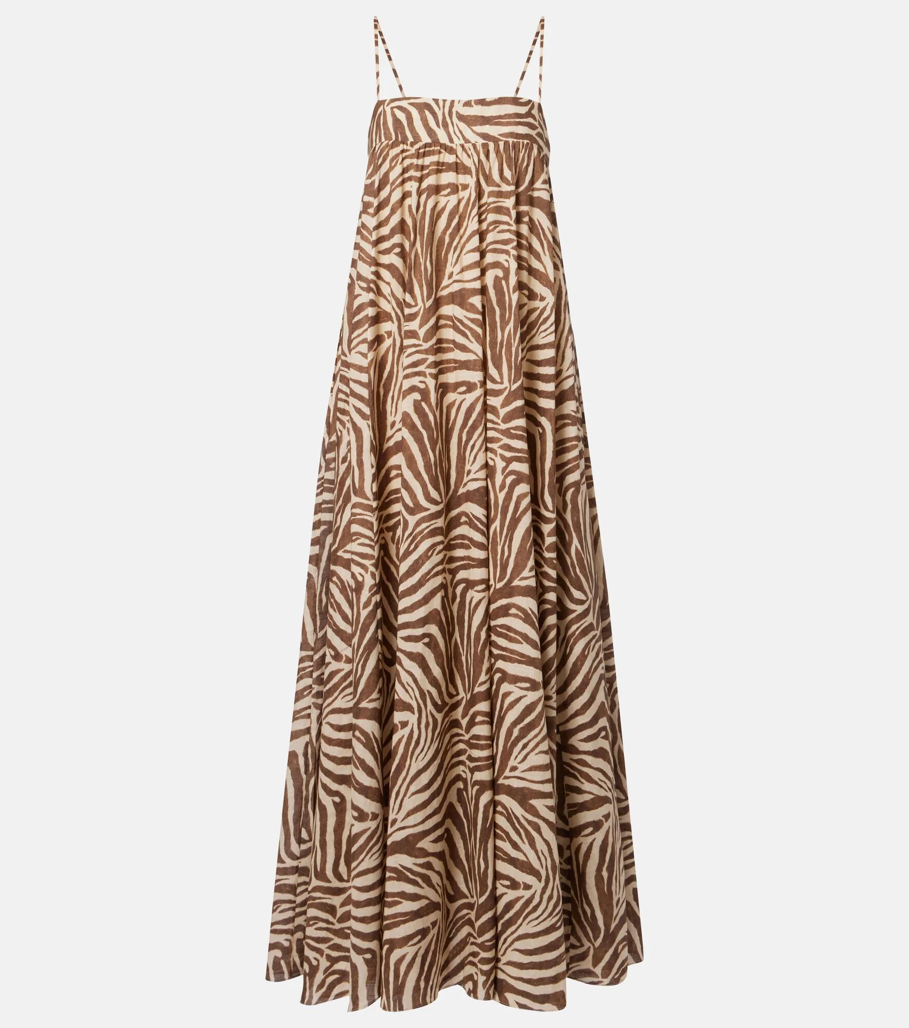 Ethereal and romantic barely scratch the surface when describing a Zimmermann piece. The Wanderlust maxi dress features a flowing silhouette with a square neckline, adjustable straps, and a charming all-over zebra print. Product Details - Material: 100% cotton - Care instructions: dry clean - Made in Portugal - Designer color name: Zebra - Item color: brown, beige - Lining: 100% cotton - Adjustable shoulder straps - Closure: concealed zipped back - Item number: P01129854 Size & Fit - True to size - Elasticated top - Designed for a loose fit - Non-stretchy fabric - The model seen in the picture is 178cm-5'10" and wearing a size 0