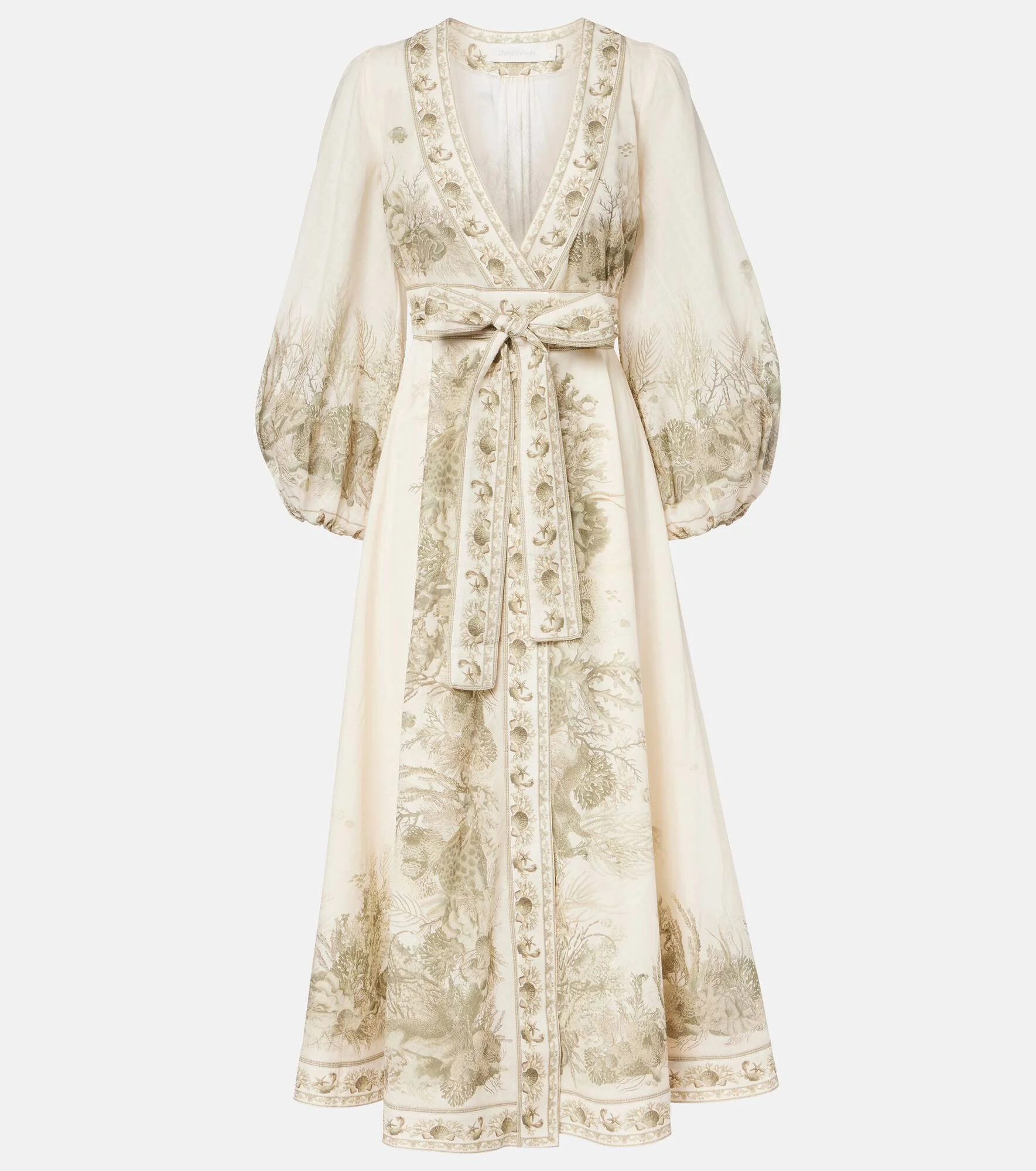 Ethereal and romantic barely scratch the surface when describing a Zimmermann piece. Made in Portugal from breezy cotton, the Wanderlust dress is a printed piece with a wrap silhouette and voluminous sleeves. Product Details - Material: 100% cotton - Care instructions: dry clean - Made in Portugal - Color: white - Designer color name: Khaki Toile - Lining: 100% cotton - Closure: wrap-front - Self-tie belt - Cuff: elasticated - Item number: P01129846 Size & Fit - True to size - Loose fit, comes with belt - Non-stretchy fabric - The model seen in the picture is 178cm-5'10" and wearing a size 0