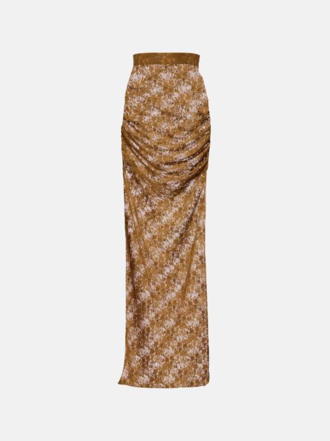 Lace-trimmed velvet midi skirt
