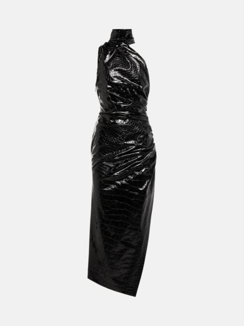 Asymmetric croc-effect midi dress