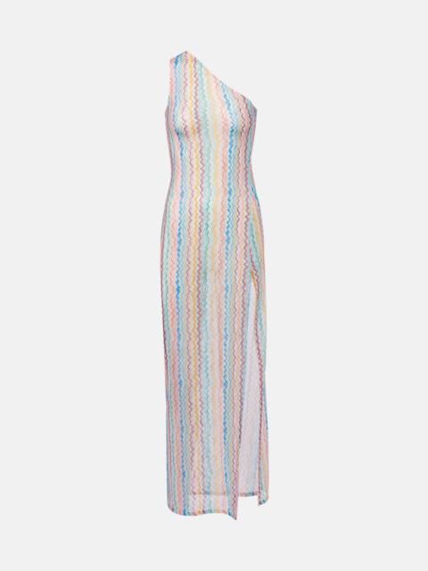 Zigzag semi-sheer one-shoulder maxi dress