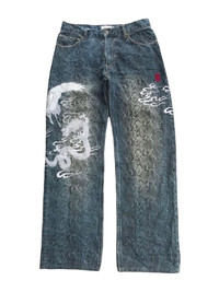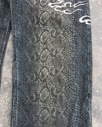 Japanese Brand - Karakuri Dragon Embroidered Snake Skin Denim