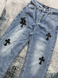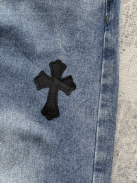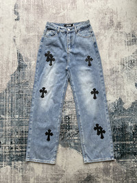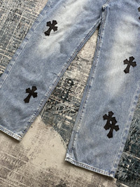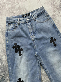 Japanese Brand - Vintage .KOM Chrome Cross Hearts Patch Denim