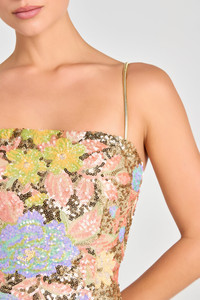 Let love bloom in the LEILA floral dress. This shimmering floral print mini dress is crafted from intricate embroidered sequin detailing. This style features a straight neckline with detachable liquid gold chain straps, and a mini hemline with slit detailing. Complete with a bodycon fit and structured corset boning for the perfect silhouette. This piece is finished with a concealed zip closure and lined in crepe for a smooth and comfortable fit. - Mini hemline with slit detailing - Stretch sequin fabrication - Bandeau neckline - Detachable liquid gold chain straps - Structured corset boning in the bodice - Concealed zip closure - Fully lined in crepe - Embroidery: 100% Polyester, Ground Fabric: 100% Nylon, Lining: 90% Polyester, 10% Elastane SIZE & FIT INFORMATION - Item runs to our size chart. Please refer here for the best fit. - Model is 5'9" wearing 4" heels and a size S - Total length from centre front point to hem: 67cm based on a size XS - Stretch Factor: Minimal Stretch Size & Fit Information Let love bloom in the LEILA floral dress. This shimmering floral print mini dress is crafted from intricate embroidered sequin detailing. This style features a straight neckline with detachable liquid gold chain straps, and a mini hemline with slit detailing. Complete with a bodycon fit and structured corset boning for the perfect silhouette. This piece is finished with a concealed zip closure and lined in crepe for a smooth and comfortable fit. - Mini hemline with slit detailing - Stretch sequin fabrication - Bandeau neckline - Detachable liquid gold chain straps - Structured corset boning in the bodice - Concealed zip closure - Fully lined in crepe - Embroidery: 100% Polyester, Ground Fabric: 100% Nylon, Lining: 90% Polyester, 10% Elastane SIZE & FIT INFORMATION - Item runs to our size chart. Please refer here for the best fit. - Model is 5'9" wearing 4" heels and a size S - Total length from centre front point to hem: 67cm based on a size XS - Stretch Factor: Minimal Stretch