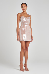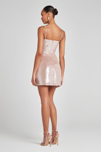 LEYTON Sequin Cupped Mini Dress leaves a lasting impression as you make your entrance and exit. Designed to accentuate your curves with grace and poise, this mini dress features a corset style bodice and our signature tulip skirt. Adorned with intricate champagne sequin, this dress catches the light with every move you make. Internal structured corset boning to the front, back and sides ensures a cinched-in silhouette, while adjustable jewelled straps for allow for adaptable elegance. Finished with a concealed zip closure to the centre back for a smooth fit. - Sequin mini dress - Cascading sequin detailing throughout - Mini hemline - Corset style bodice - Internal boning to the front, back and sides - Adjustable, detachable jewelled straps - Signature tulip skirt - Concealed zip closure at the centre back - Fully lined for a smooth fit - Outer: 86% Polyester 14% Elastane, Lining: 96% Polyester 4% Elastane Size & Fit Information - Item runs to our size chart. Please refer here for the best fit. - Model is 175cm/ 5ft 9 wearing 4” heels and size XS - Stretch Factor: Minimal Stretch - Total length from front top edge to hem is 60.5cm based on a size XS