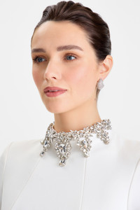 Description & Features The REGAN White Dress is crafted from our exclusively designed crepe fabrication. This elegant mini dress features a high round neckline adorned with a statement jewel-embellished droplet design. The contoured bodice is structured to accentuate the silhouette, enhanced with internal shoulder pads and cap sleeves. Finished with our signature tulip-style mini skirt, functional side pockets, and a concealed back zip closure, REGAN is fully lined for a smooth, comfortable fit. - Exclusively designed white crepe fabrication - High round neckline with a statement jewel-embellished droplet design - Signature tulip style skirt - Cap sleeves - Internal shoulder pads for maximum structure - Contoured bodice to accentuate the silhouette - Concealed zip closure - Fully lined for a smooth fit Size & Fit Information - Item runs to our size chart. Please refer here for the best fit. - Model is 175cm/5'9" wearing 4" heels and a size XS - Stretch Factor: No Stretch
