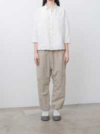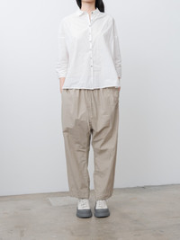 Easy trousers from Album di Famiglia featuring a drop crotch and loose tapered legs. The fabric is the brand's signature lightweight paper cotton that feels crisp and dry to the touch. Details include an elasticated waist with drawstrings and side pockets. - Made in Italy - 100% Cotton - Available in Black, Brown, Stone - The model is 5'7/170cm and wears size S