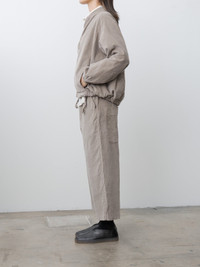 Album di Famiglia's signature Wide and Short Trousers in a lightweight, soft and stretchy cotton velvet. Details include an elasticated waist with drawstrings, side pockets, oversized lower back patch pockets, and wide, cropped legs. - Made in Italy - 97% Cotton, 3% Elastane - Available in Oatmeal (warm white), Marron Glace (grayish beige), Black, Ink (navy) - Model is 5'7/170cm and wears size S