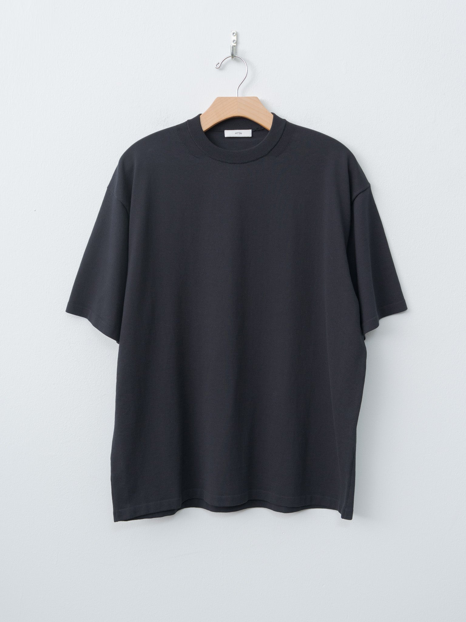 This half sleeve crewneck sweater is crafted from ATON’s original Fresca knit, made with strongly twisted Indian extra-long staple cotton. Knitted at 18-gauge to the limits of the yarn, the sweater has a subtle texture and a clean finish and offers a soft yet structured drape. Its slightly oversized boxy silhouette is balanced by ribbed edges at the neck, cuffs, and hem—designed to resist shrinkage while maintaining a tailored look. - Made in Japan - 100% Cotton - Available in White, Black - The model is 5'7"/170cm and wears size 4/M