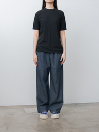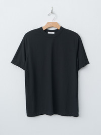 This loose fit t-shirt is crafted in Wakayama, Japan from hand-picked, high-twisted cotton, offering a crisp texture. The breathable jersey is lightweight, wrinkle-resistant, and quick-drying, offering a balance between structure and ease. Details include a classic crew neck and a loose fit with a straight, regular length hem. - Made in Japan - 100% Cotton - Available in Sax, Black - The model is 5'7"/170cm and wears size 2/M