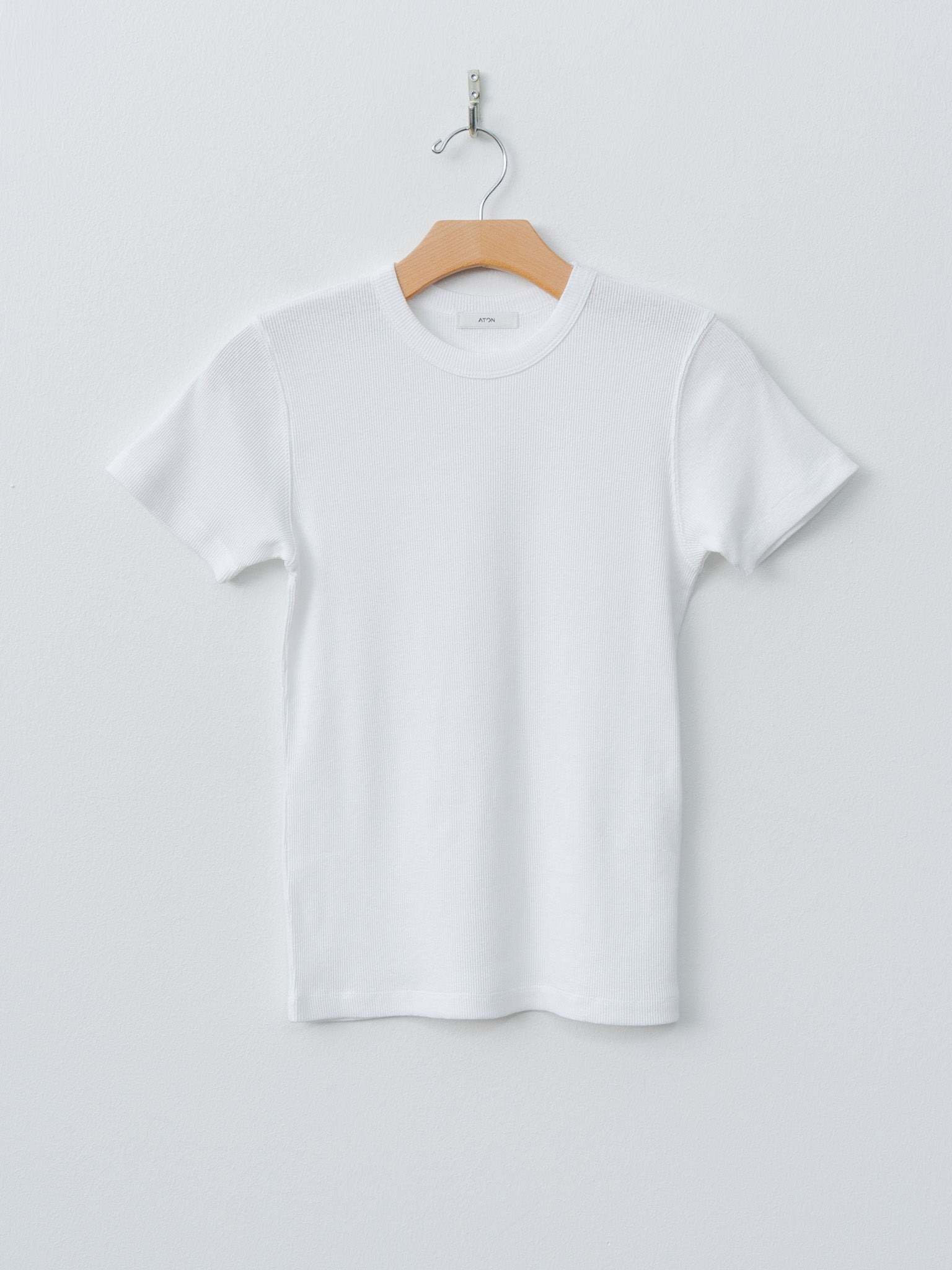 The Recycle Suvin Rib Fit T‑Shirt is a compact, stretch-to-fit style crafted from recycled Suvin cotton in a fine rib knit. The fabric offers soft stretch with a matte, dry hand feel. Details include a classic crew neckline and clean hem finish. - Made in Japan - 100% Cotton (recycled suvin cotton) - Available in White, Charcoal Gray - The model is 5'7"/170cm and wears size 2/M - One Size