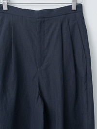 Silk Linen Shantung Two Tucked Pants - Navy x Pinstripe