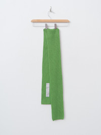 A lightweight stole crafted from premium cashmere yarns, spun with a specialized technique that enhances both luster and durability. With wear, the surface develops a softer hand and a distinctive character, making each piece truly unique. - Made in Japan - 100% Cashmere - Available in Green - L 44.8" x W 4.6"