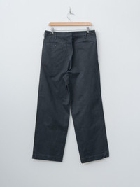 Auralee’s refined take on the chino, cut with a relaxed fit, straight leg, and a single front pleat. The fabric is woven from twisted three-ply yarns of Egyptian extra-long staple Finx cotton, giving it exceptional softness and a dense, full-bodied hand. Each pair is garment-dyed and hand-finished by skilled artisans, resulting in a beautifully uneven tone with rich depth and character. Finished with side pockets, back welt pockets, and a single button tab closure. - Made in Japan - 100% Cotton - Available in Black - The model is 6'1"/185cm and wears size 4/M
