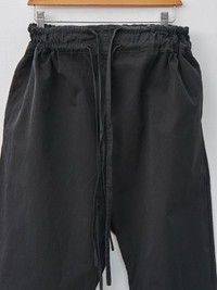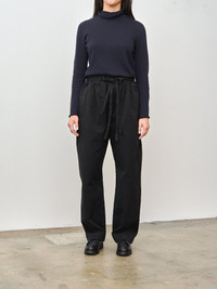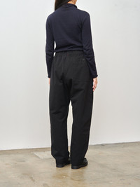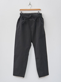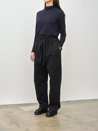 The Denmark Pant features a paperbag waist with a double drawstring to cinch as you'd like. The fabric is a smooth, mid-weight double cot. Details include full length tapered legs, side pockets and a buttoned patch pocket on the back. - Made in France - 100% Cotton - Available in Black - Model is 5'7/170 cm and wears a size S - Fully adjustable waist - it is quite wide without the cinch. We recommend sizing down one size.