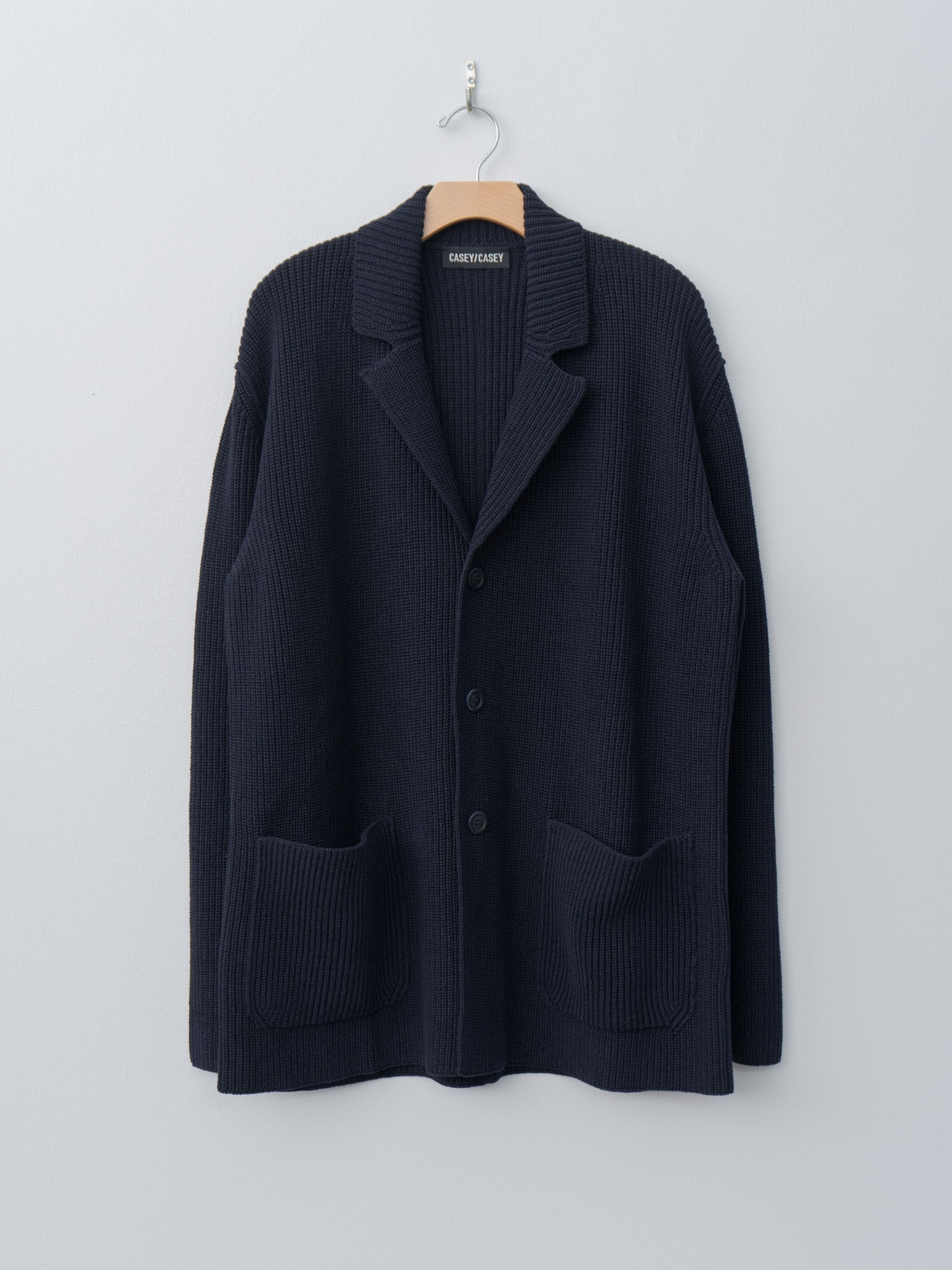The Pannocchia is a fully fashioned knit jacket made from crepe cotton. It features a half-cardigan stitch, resulting in a textured rib-like design that offers thickness, depth and flexibility. Other details include front pockets, corozo buttons, fine crest signature detail (raised design) at the center back. Relaxed fit. - Made in Italy - 100% Cotton - Available in Navy - The model is 6'1/185 cm and wears size M