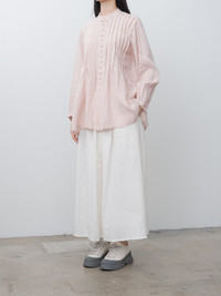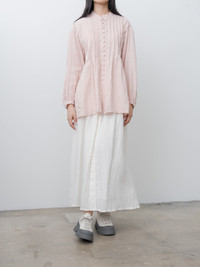 A midi length skirt from Ichi featuring delicate fabric covered button detailing on the front. The material is an airy and lightweight French linen with cotton lining. Details include an elasticated gathered waist, side seam pockets and a gentle A-line shape. - Linen 100% - Available in White, Navy - The model is 5'7"/170cm and wears the One Size