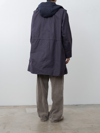 A collaboration between Barbour and Kaptain Sunshine, the Bedale Casual Field Coat is a modern oversized field jacket that reinterprets the classic 1980 Bedale silhouette. The outer is constructed from a dry waxed cotton that provides a crisp, structured hand and subtle weather resistance. Details include a corduroy trim, detachable contrasting wool hood, bellow pockets with two way opening, a drawcord waist, side vents with stud detailing, and inner studs for attaching a quilted liner. - Made in the EU - 100% Cotton (Shell), 100% Wool (Hood) - Available in Khaki Brown, Dark Indigo - The model is 6'1"/185cm and wears size 40/L