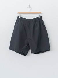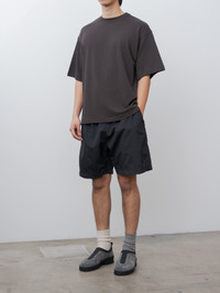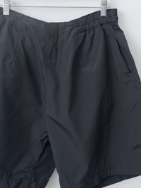 Kaptain Sunshine's signature trainer short pants made in a high-density, weather-resistant silk poly blend. It feels lightweight with a subtle sheen and has a water-repellent finish. Details include side pockets, a back zip pocket and an elasticated waist. Relaxed fit, wide legs. - Made in Japan - Silk, Polyester - Available in Brown, Black - The model is 6'1"/185 cm and wears size 32