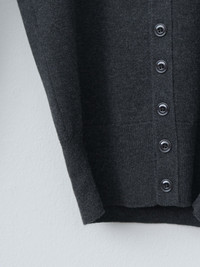 The Buttoned Fitted Cardigan features a slim silhouette with a stand-up collar that can be folded down. It is made from fine wool that has been lightly mercerized for a subtle sheen. Details include elongated sleeves, lacquered button closure, and rib-knit trim at the collar, cuffs, and hem. - Made in Portugal - 100% Wool - Available in Anthracite Melange - The model is 5'8"/173cm and wears size S
