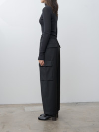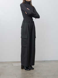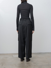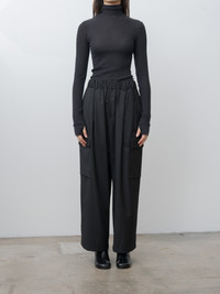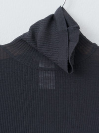 From Lemaire a super lightweight seamless high neck top with a fitted silhouette. It is knitted in finely ribbed merino wool developed with EMO, a French specialist in tubular garments. Other details include cuffs with integrated thumbholes and rib-knit trims. Stretches to fit. - Made in France - 100% Wool (Fine Merino) - Available in Granite Black - The model is 5'8"/173cm and wears size S