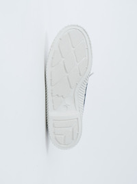 The 900F Military Trainer is a modern reproduction of Soviet Army training shoes from the 1980s, crafted using the durable vulcanized manufacturing method. It features a cotton canvas upper sourced from a historic fabric mill, and the sole is made with a vintage 1970s mold for an authentic shape and structure. Composed of high-content natural rubber, the sole is highly flexible and comfortable, allowing the shoe to be easily bent in half. - Made in Slovakia - Cotton upper / rubber sole - Available in Navy/White - EU sizing - true to size. If in between sizes, we recommend sizing up. - For smaller sizes, please check here