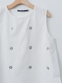 The Brody Top is a sleeveless top made from 'glazed' textured cotton featuring delicate metal eyelets throughout. It features a round neckline and a side split hem with a slightly longer length in the back. Subtle A-line, boxy fit. - Made in the EU - 100% Cotton - Available in Off White - The model is 5'7"/170cm and wears size 34/XS