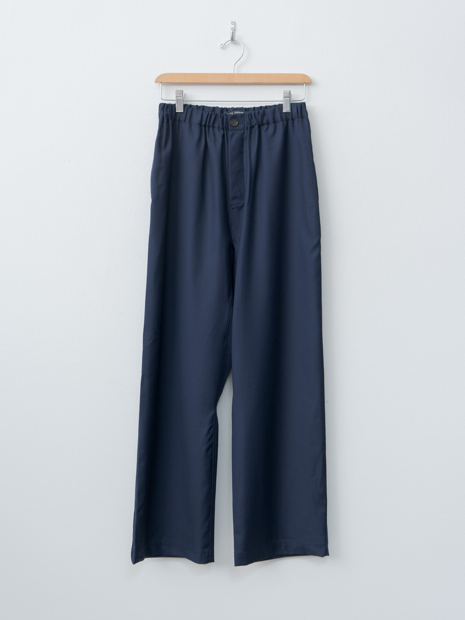 The Pinot Trouser in Admiral is a relaxed fitting straight leg style with a slight drop crotch, crafted from a lightweight, Super 110s suiting wool. It features a fully elasticated waistband, single button closure with a zip fly, slanted side pockets, and a single patch pocket at the back. - Made in the EU - 100% Wool 110s - Available in Admiral (navy) - The model is 5'8"/173cm and wears size 36/S