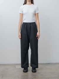 The Pinot Trouser is a relaxed fitting straight leg style with a slight drop crotch, crafted from a lightweight, warm and incredibly smooth virgin wool. It features a fully elasticated waistband, single button closure with a zip fly, slanted side pockets, and a single patch pocket at the back. Coordinating item with Cimabue Jacket in Anthracite Melange. - Made in the EU - 100% Virgin Wool - Available in Anthracite Melange - The model is 5'8"/173cm and wears size 36/S