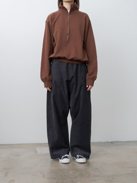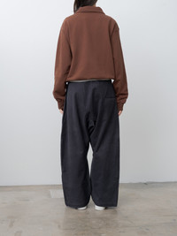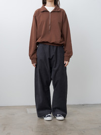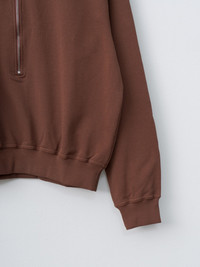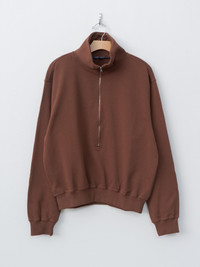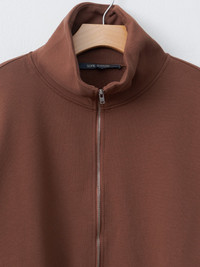 The Tintoretto Fleece is a half-zip pullover made from lightweight, smooth cotton fleece. It features a high stand collar that can be worn zipped up or folded down, with ribbed cuffs and hem for a clean finish. Relaxed fit. - Made in Portugal - 100% Cotton - Available in Chestnut, Navy - The model is 5'7"/170 cm and wears size 36/S
