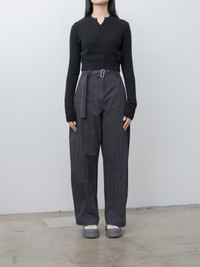 The DORING Trousers are made from a Japanese cotton-nylon blend with a crisp, dry hand feel. It features a high waist fit with a detachable belt and full length wide legs. Details include a flat front, zip-fly with button closure, and side pockets and rear patch pockets. - 55% Cotton, 45% Nylon - Available in Dark Navy - The model is 5'7"/170cm and wears size UK6/IT38 - We recommend sizing down one size
