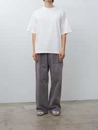 Wide leg baker trousers made from pigment-coated cotton. The fabric was originally coated entirely in black pigment which was partially removed through washing, and then garment-dyed for a layered and nuanced final color. The result is a smokey, deep-tone pink. Details include a wide fit with a single front tuck, patch pockets and adjustable tabs at the waist. - Made in Japan - 100% Cotton - Available in Dusty Pink - The model is 6'1"/185 cm and wears size 3/M