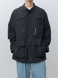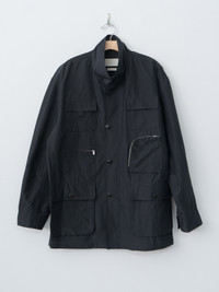 A photographer jacket featuring 8 pockets on the front for great storage capacity.The slubby linen weft gives the fabric a crisp, dry hand and visible texture, while the acetate warp adds subtle sheen and excellent moisture absorption - it is finished with a washer process to give it a natural look and feel. Details include a button and zip front, convertible stand collar, zip pockets, dual-opening patch pockets, buttoned cuffs, and a straight hem. Unlined. - Made in Japan - 48% Linen / 34% Acetate / 18% Cotton - Available in Deep Sunflower, Black - The model is 6'1"/185 cm and wears size 4/L