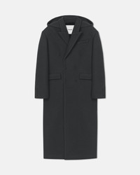 The Melva Coat by Nanushka is a new, refined layering piece in a deep green-toned felted wool. Its double-breasted front and detachable hood blend utilitarian detail with fluid tailoring. Fit Intentionally designed for an oversized look. Model is 180 cm (5'11'') and wears a size S. Materials and Care Shell 1: 75% VIRGIN WOOL 25% POLYAMIDE Shell 2: 67% TRIACETATE 33% POLYESTER Lining: 100% FSC VISCOSE Detail: COATING: POLYURETHANE BASE: 100% POLYESTER (RECYCLED) Do not wash, Do not bleach, Do not tumble dry, Iron low heat (110°), Gentle Dry clean any solvent except Trichloroethylene