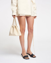 A playful bag style. The gather bucket has a tactile quality. It features gold hardware details and a magnetic fastening. This style is designed to be held in the hands or slung over the shoulder. Height: 20cm Width at base: 22cm Width at top: 22cm Depth: 8cm Materials and Care Body: 60% Polyurethane; Body 40% Polyester; Lining 50% Polyamide; Lining 50% Polyurethane; Hardware 100% Zinc Alloy Due to the delicate nature of this product, please do not use strong solvents and abrasive textures when cleaning to avoid damage.