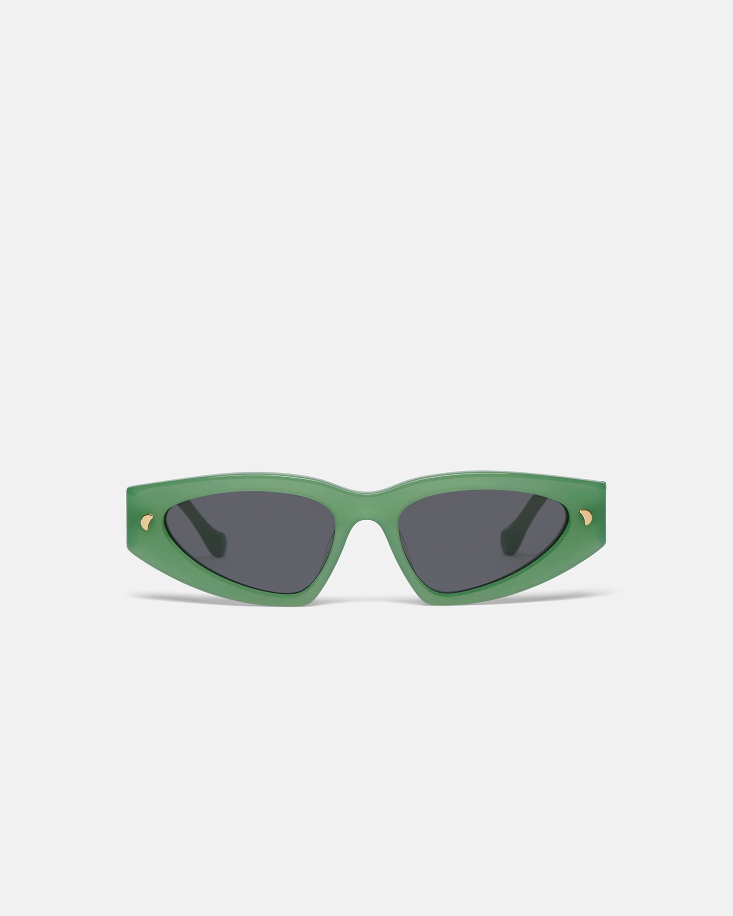 The Crista sunglasses are defined by a futuristic D-frame shape accented with signature gold ‘N’ motifs at the temples. In translucent green, they are crafted from bio-plastic and accompanied by a protective pouch made from offcuts of our signature alt-leather. Materials and Care Frame: 100% Acetate ; Lenses 61% Fossil Fuel; Lenses 39% Plant Based Resin Use a damp cloth and a mild soap to clean the lenses then dry them with the soft cleaning cloth sold with the product. do not use solvents (e.g alcohol acetone) or aggressive detergents which may alter the features of the glasses.