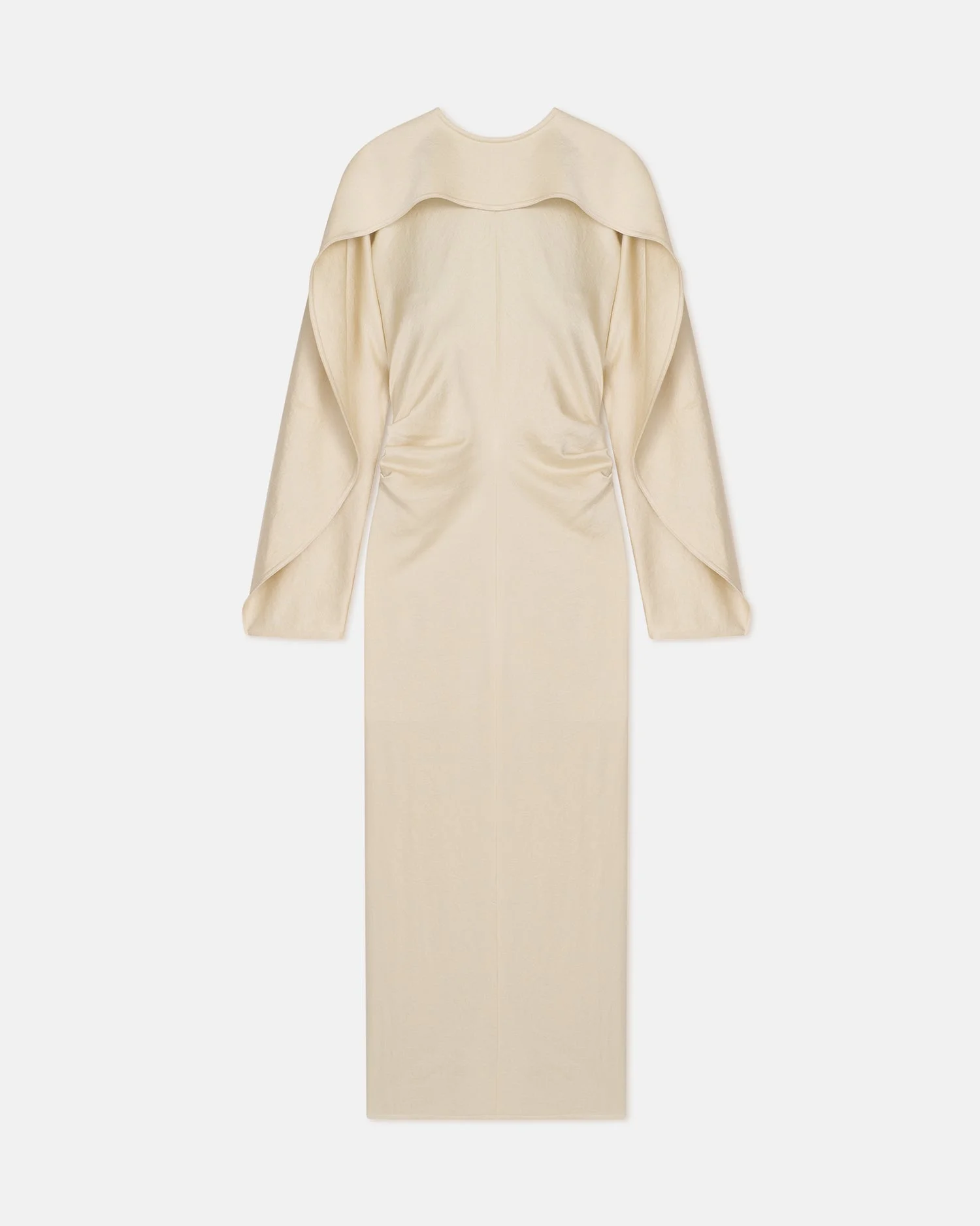 The Jil Dress by Nanushka reimagines our classic elegance. Cut from crisp satin, this fitted midi dress is defined by a pilgrim collar and structured draping. In ecru satin, it is an enduring piece for seasonless sophistication. Fit Standard fit, matches usual sizing Model is 175 cm (5'9") and wears a size S. Materials and Care Shell: 82% TRIACETATE 18% POLYESTER Machine wash warm (30°) Do not bleach Do not tumble dry Iron low heat (110°) Dry clean any solvent except trichloroethylene