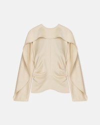 The Jamille Top by Nanushka brings architectural detailing to a refined silhouette. Cut from crisp satin, this fitted long-sleeved top is defined by a pilgrim collar and fluid draping. Fit Standard fit, matches usual sizing Model is 175 cm (5'9") and wears a size S. Materials and Care Shell: 82% TRIACETATE 18% POLYESTER Machine wash warm (30°) Do not bleach Do not tumble dry Iron low heat (110°) Dry clean any solvent except trichloroethylene