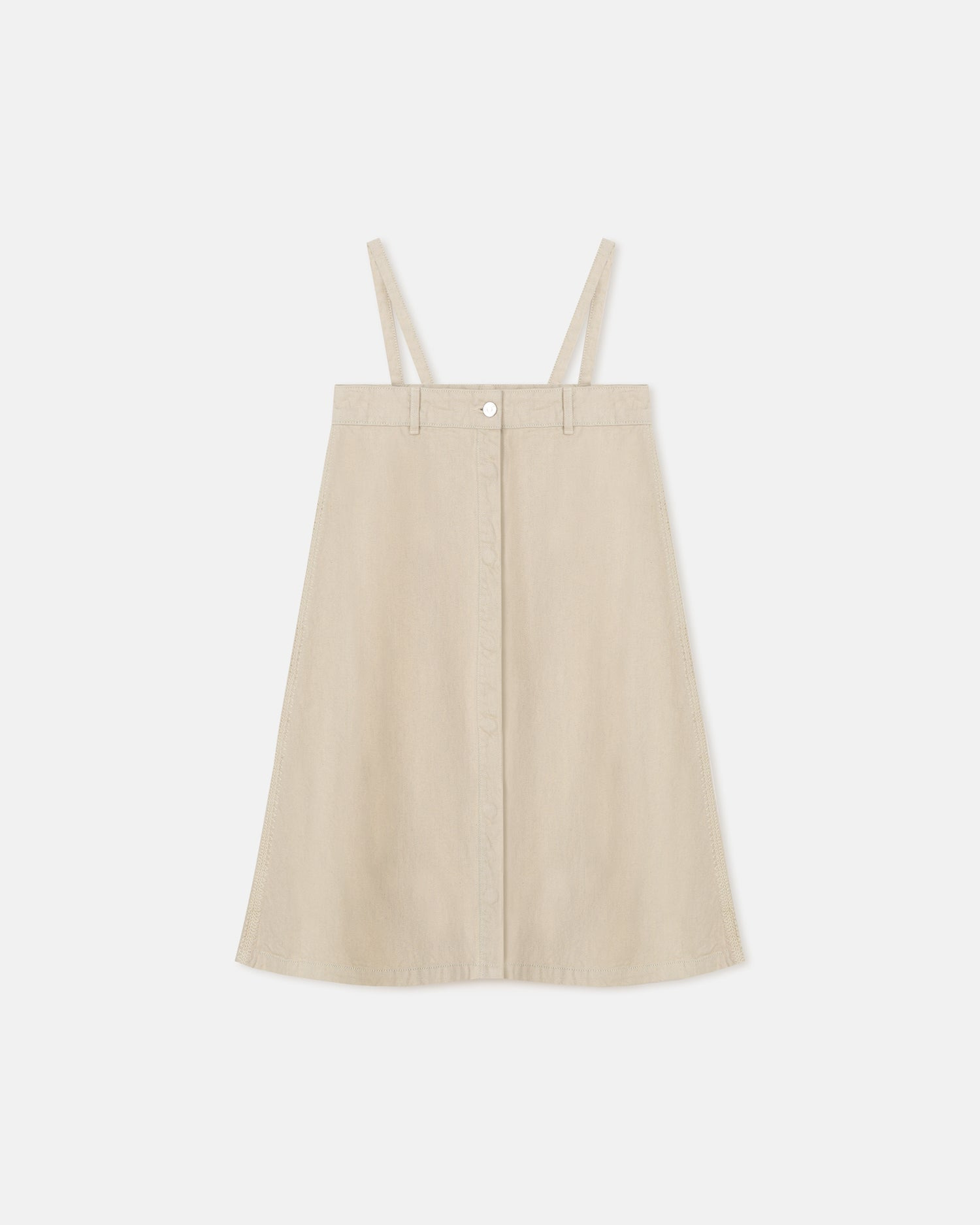 We continually look to elevate ready-to-wear essentials, creating something entirely new. Made from beige denim, the Lidwina dress has a neckline inspired by classic jean styles – think belt loops and silver hardware. It hangs from thin straps in a voluminous A-line silhouette. Fit Intentionally designed for an oversized look. Materials and Care Shell: 100% Cotton Hand wash, do not bleach, do not tumble dry, iron low heat (110°), gentle dry clean any solvent except trichloroethylene Handle with care and wash less to ensure garment lifespan. Repair or resell to support circular fashion.