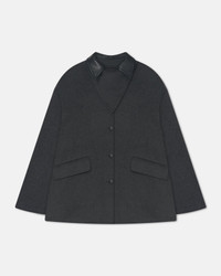 Our Jada Jacket juxtaposes sharp tailoring with an oversized fit. In grey melange double wool with a black regenerated leather collar. Fit Intentionally designed for an oversized look. Model is 180 cm (5'11'') and wears a size S. Materials and Care Shell 1: 90% WOOL 10% SILK Shell 2: BASE: 100% POLYESTER COATING: POLYURETHANE BACK:BONDED LEATHER Middle: 80% POLYESTER20% POLYAMIDE Lining: 100% VISCOSE Do not wash Do not bleach Do not tumble dry Do not iron Gentle Dry clean any solvent except Trichloroethylene