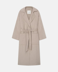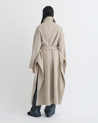The Salima coat is crafted from the softest double wool to fluidly drape over your frame with a self-tie belt and scarf-inspired hem. In a stone hue, it will endure season after season. Fit Intentionally designed for an oversized look. Materials and Care Shell: 90% Wool 10% Silk Lining: 100% Viscose Do not wash, do not bleach, do not tumble dry, do not iron, gentle dry clean any solvent except trichloroethylene Handle with care to ensure garment lifespan. Repair or resell to support circular fashion.