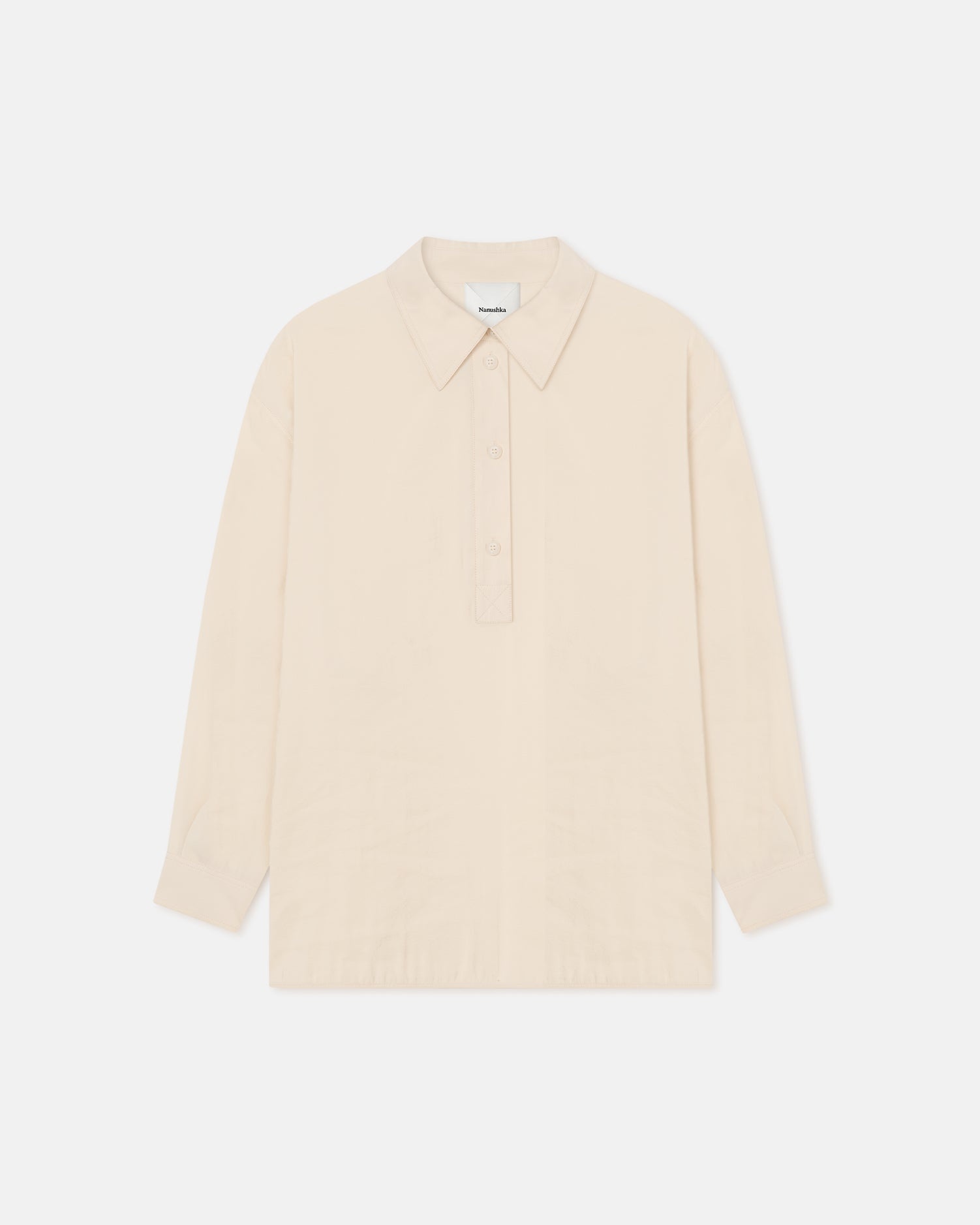 The Linka shirt is cut from glass poplin for an ultra-oversized fit, with an open collar and dropped shoulder seams to enhance the effect. The oat tone subtle calls out our love of utilitarian aesthetics. Fit Intentionally designed for an oversized look. Materials and Care Shell: 74% Viscose 26% Polyester Machine wash warm (30°) permanent press, do not bleach, do not tumble dry, iron low heat (110°), dry clean any solvent except trichloroethylene, do not wring Handle with care and wash less to ensure garment lifespan. Repair or resell to support circular fashion.