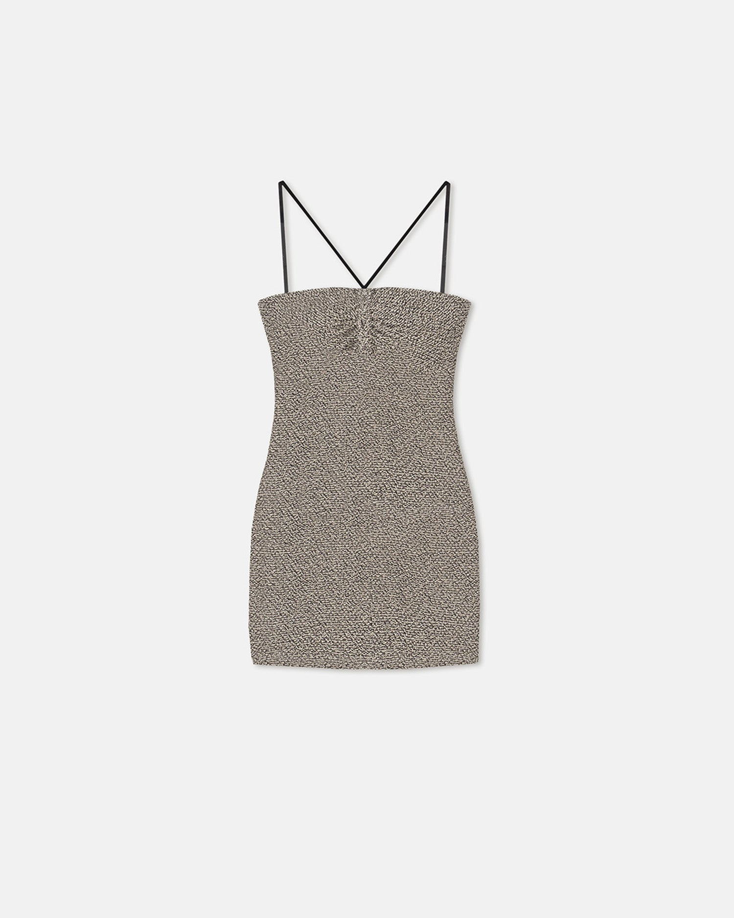 To mark our 20th anniversary, we experiment with new techniques such as fabric looping. The Rois dress is made from cotton with a looped texture, and is further distinguished by a black halter neckline and artful ruching. Fit Tailored to be fitting against the body. Materials and Care Shell: 100% Cotton Do not wash, do not bleach, do not tumble dry, iron low heat (110°), dry clean any solvent except trichloroethylene, do not wring. Handle with care to ensure garment lifespan. Repair or resell to support circular fashion.